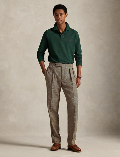An American style standard since 1972, the Polo shirt has been imitated but never matched. Over the decades, Ralph Lauren has reimagined his signature style in a wide array of colors and fits, yet all retain the quality and attention to detail of the iconic original. This version is tailored through the waist and washed for added softness.Custom Slim Fit: a trim silhouette in between our Classic Fit and Slim Fit. Tailored through the waist.Size medium has a 27.5" front body length, a 28.5" back body length, a 17.75" shoulder, a 20.75" chest, and a 34.5" sleeve length.Ribbed Polo collar. Two-button placket.