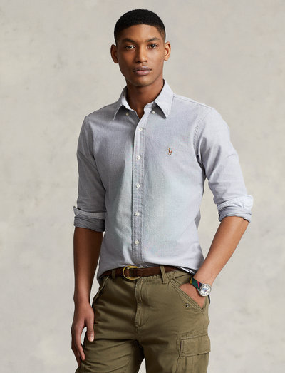 Nööpidega kraeThe oxford shirt made its debut at the beginning of the Ralph Lauren brand, and since then it has solidified its status as a pillar of the Polo look. Today, Mr. Lauren continues to design countless variations of his iconic shirt, including this trim version that is finished with our signature Pony.Slim Fit: cut close to the body, with fitted sleeves and higher armholes; 5¼” slimmer at the waist than our Classic Fit.Size medium has a 31" back body length, an 18" shoulder, a 41½" chest, and a 34½" sleeve length. Sleeve length is taken from the center back of the neck and changes 1" between sizes.Button-down point collar. Buttoned placket.