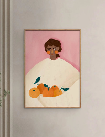 Discover a captivating portrait of a woman holding oranges, exuding warmth and vitality. This stunning artwork adds a touch of elegance to any space.