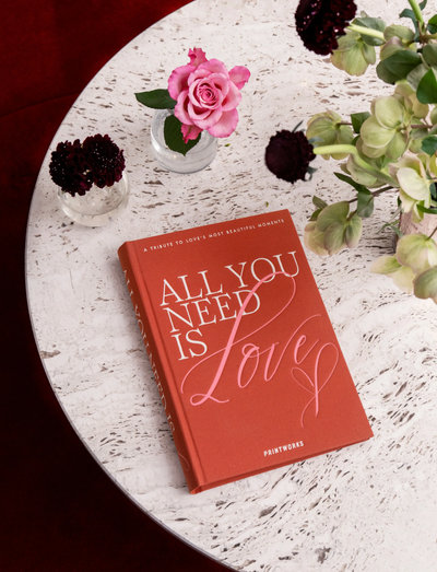 Designed to capture the moments that matter most, this vibrant photo album brings a playful yet timeless feel to any space. Covered in bold orange cloth and finished with the phrase All you need is love in white and pink lettering, it’s both a meaningful keepsake and a striking interior detail. Inside, 80 pages of 150 gsm off-white paper offer room for up to 160 horizontally placed photos (maximum size 11x15 cm), perfect for preserving your favorite memories with heart.