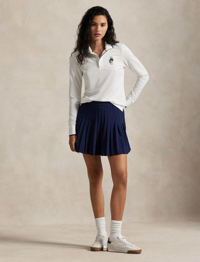 GolfHingavast trikotaažkangast valmistatud pikkade varrukatega polosärk on kohandatud lõikega ning rinnal on ikooniline Polo Bear ja tunnuslik “RLX” logo. Disain sisaldab soonikkoes polokraed triibuliste otstega ja kolme trukiga kinnitusliistu eritellimusel valmistatud metallist trukkidega.