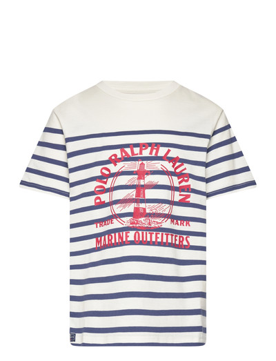 Klassikalised triibud iseloomustavad seda pehmest puuvillasest trikotaažist T-särki. Mereteemaline graafika lisab mängulise puudutuse.