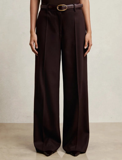 Need püksid on valmistatud villasegust toimsekoest ning pakuvad moodsat lähenemist klassikalisele rätsepatööle oma laia siluetiga. Disaini täiustavad pressitud voldid ja pealtõmmeldud küljetaskud, mis aitavad kaasa selle rafineeritud välimusele.