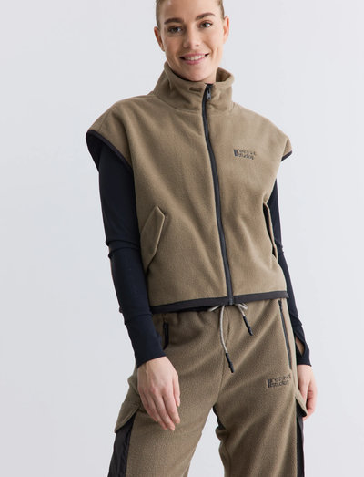 JoogaSee gilet on valmistatud ülipehmest polarfliisist ning pakub erakordset mugavust ja soojust. Veidi ülemõõduline siluett on laia õla ja kandilise kraega, mistõttu on see ideaalne kihiliseks riietumiseks. Sellel on praktilised trukkidega küljetaskud, kontrastset tuulejope materjalist tagatasku ja reguleeritav vöökoht elastsete nööridega, et tagada individuaalne sobivus.