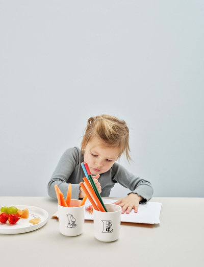 Oskus ennast väljendada on üks tähtsamaid asju maailmas: see võimaldab teil edastada oma lootusi ja unistusi, suhelda teistega, tegeleda meie aja suurte küsimustega ja luua muutusi. Kollektsiooni jaoks loodud tähestikud põhinevad kõik Tove Janssoni originaalkirjadel. Muumide ABC-tassil on 26 versiooni, millest igaühel on täht A-st Z-ni ja tassi küljel on kujutatud üks omapärane ja lõbus tegelane Muumide maailmast. Tass mahutab 0,2 l ja on valmistatud ABS-plastikust, mis on äärmiselt vastupidav. Kui teil on väikelaps, saab tassile eraldi osta ka värvi "lõhe" või "türkiissinine" kaane. Nii tass kui ka kaane on nõudepesumasinas pestavad ning loomulikult ilma BPA, ftalaatide ja muude kahjulike aineteta.