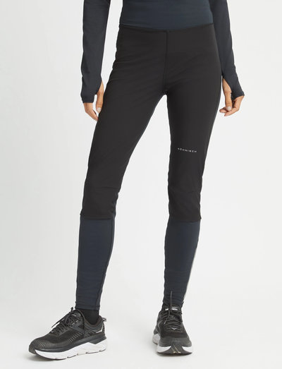 Made in 77% recycled brusched thermo polyester jersey. 87% recycled woven water and wind resistant polyamide at front over knee. Pocket at centerback outside of waistband. Elastic drawstring inside waistband, reflective logo print at leg. Reflective zippers at bottom hem. Tight Fit