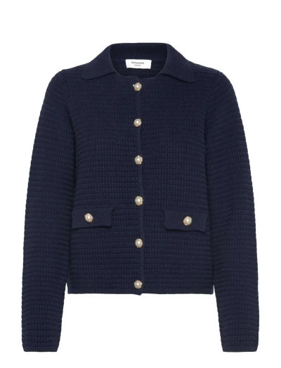 See jakk on tekstuurse kudumi ja klassikalise kraega, mis annab rafineeritud välimuse. Viimistletud nööpkinnituse ja tagasihoidlike esitaskutega.