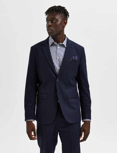 Sellele slim fit lõikega ja klassikaliste detailidega pintsakule annavad viimistluse kaks nööpi. Sellel on sälkreväär, sirged klapptaskud, rinnatasku, topeltlõhikud ja siseääristusega taskud.