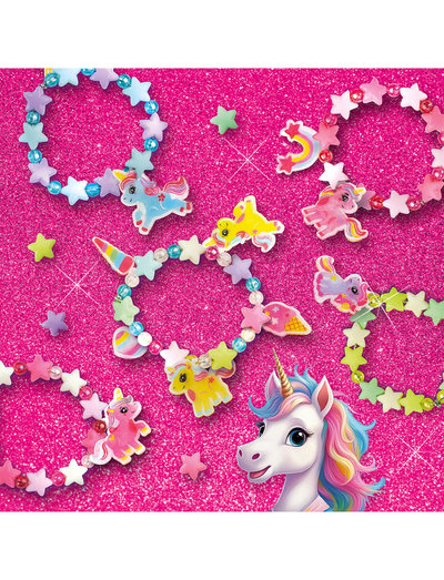 Colourize and personalize unicorns on shrink foil to create unique charms for bracelets.