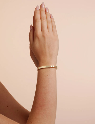 Sellel elastsel käevõrul on elegantsed ristkülikukujulised lülid ja poleeritud viimistlus. Selle paindlik disain tagab mugava ja stiilse sobivuse.