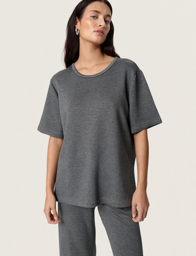 See lühikeste varrukatega T-särk on lõdva lõikega, mistõttu on see ideaalne igapäevaseks kandmiseks. Lihtne disain tagab, et see sobib hästi erinevate rõivastega, pakkudes nii mugavust kui ka stiili.
