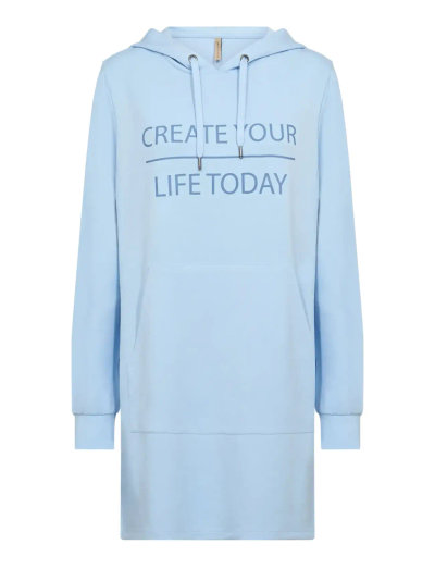 See pikkade varrukatega tuunika pakub lõdvestunud lõiget ja mugavat kapuutsi reguleeritavate paeltega. Pehme modaali, polüestri ja elastaani segu tagab meeldiva tunde, samas kui kängurutasku lisab praktilisust. Esikülge kaunistab tsitaat, mis täiendab seda vabaaja rõivaeset.