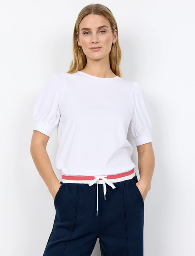 See orgaanilisest puuvillast T-särk on pehme ja hingav. Disainil on klassikaline ümar kaelus ja elegantsed puhvis lühikesed varrukad, millel on elastsed mansetid. See on mitmekülgne rõivas, mida saab hõlpsasti kombineerida teksade või seelikuga, et luua lõdvestunud, kuid stiilne välimus.