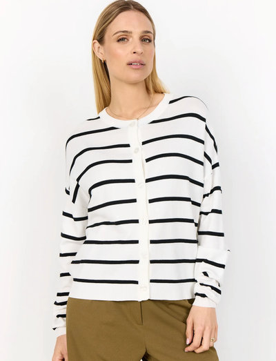 Sellel triibulise kardiganil on klassikaline ümmargune kaelus ja pikad varrukad, mis pakuvad mitmekülgseid stiilivalikuid. Nööpidega disain võimaldab seda hõlpsalt kihiti kanda, muutes selle ideaalseks lisandiks nii vabaaja- kui ka pidulikumatele rõivastele.