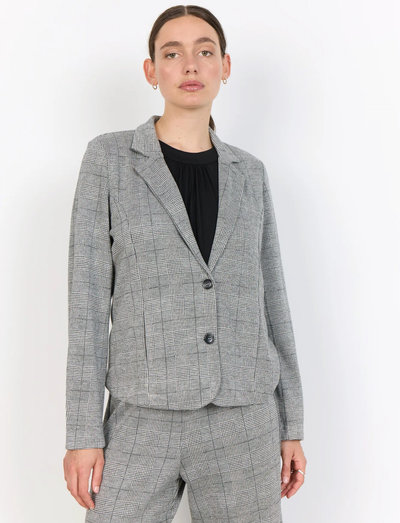 See ajatu ruudumustriga bleiser lisab igale riietusele elegantse puudutuse. Valmistatud taaskasutatud ja jätkusuutlikest viskooskiududest koos veidikese elastaaniga, pakub see nii mugavust kui ka figuuri rõhutavat sobivust. Klassikaline reväärkrae ja nööpkinnitus lisavad sellele mitmekülgset disaini, muutes selle ideaalseks nii pidulikeks kui ka vabaaja üritusteks.