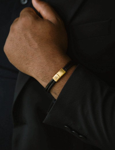 Saavuta kihiline välimus ühe ehtega tänu sellele kahekordsele käevõrule. See on valmistatud pühvlinahast ning sellel on punutud riba koos töötlemata nahast rõngaga, mis kinnitatakse harjatud hõbedase magnetkinnisega.