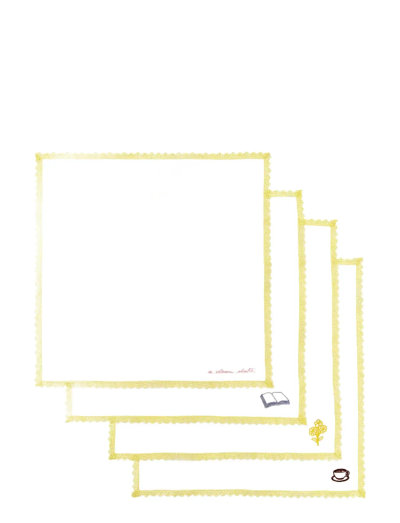 Set of four cotton napkins framed with soft lace and intricate embroidery.