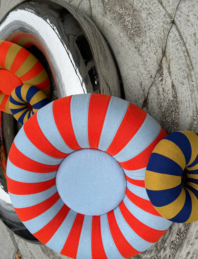 Soft shapes, bold colour play FLOAT PILLOW is a sculptural cushion with a rounded, playful design that brings colour and comfort into your space. Inspired by the FLOAT pouf, it’s made to move freely through your home – to be leaned on, lounged with and lived around. The circular form is soft and striking at once, adding both visual texture and practical comfort to sofas, chairs and beds. How to style it Style FLOAT PILLOW on a lounge chair to soften straight lines, or mix multiple pillows for a layered, colourful look. Pair it with the matching FLOAT pouf to echo shapes and tones across the room – or contrast it boldly with graphic textiles. Ø 400 mm, H 150 mm100% polyester (cover and filling)Machine washable at 30°CDesigned by architect Mikkel Lang MikkelsenColours: Blue/Red, Dark Blue/Ochre