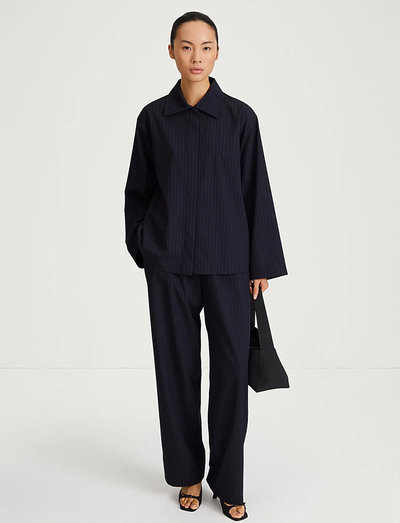 See särk on valmistatud peenetriibulisest ülikonnariidest ja sellel on lõdvalt laienev siluett. Disainis on kasutatud signatuurset passe ja voldik seljal, mida täiendavad täispikad laiad varrukad, luues rafineeritud ja lõõgastunud stiili.