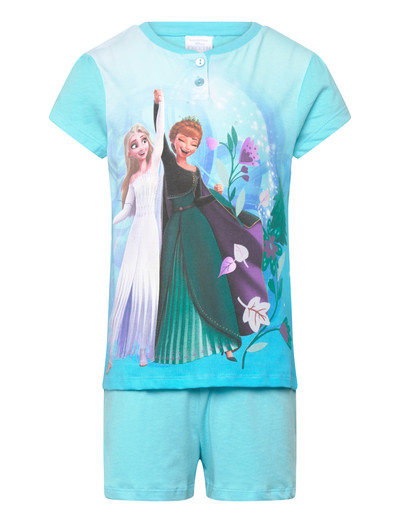 See pehme komplekt tagab erksa mustriga mugava ööune. Komplekti kuuluvad lühikeste varrukatega nööbitav ülaosa ja sobivad lühikesed püksid.