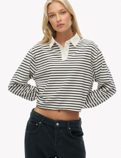 See lühike ragbitop on üliuurus lõikega, mis tagab lõdvestunud silueti, ja on stiilne täiendus sinu garderoobile. Sellel on nööpkinnitusega krae ja soonikkoes mansetid, millel on viimistlemata alläär. See kuulub Athletic Essentials kollektsiooni ja sobib ideaalselt igapäevaseks kandmiseks.
