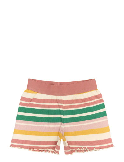 Wonderful shorts with horisontal stripes in various thicknesses and summery colours. These girl's shorts from THE NEW are soft and lightweight shorts in a simple and sleek rib pattern, which also makes them stretchable. They are particularly suitable for everyday wear but can also be used for an elegant set with an elegant top. Pair them with the matching TNOhara top for a beautiful striped set.- Loose fit.- Striped.- Wavy baby lock trim.- Rib-knitted.- Wide elasticated waistband- GOTS organic certified by CU842535