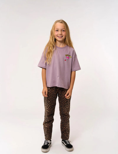 Short-sleeved oversized t-shirt from THE NEW with a playful print of a heart pierced by an arrow and the text "Love Wins" on the front. The back features a charming design of three smiling flowers, a rainbow, and the message "Love Wins - Love more, worry less." This t-shirt is both fun and uplifting, perfect for adding a touch of positivity to everyday outfits. Style it effortlessly with jeans or shorts for a relaxed and cheerful look.