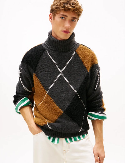 Klassikalise rombimustriga kõrge kaelusega kampsun pakub nii soojust kui ka ajatut esteetikat. Pehme kootud konstruktsioon tagab mugava istuvuse, muutes selle ideaalseks valikuks jahedamateks päevadeks.