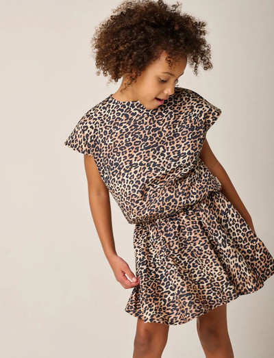 Kootud puuvillane lühikeste varrukatega top, millel on üle kogu pinna loomamuster. See kerge rõivas on tagant trukk-kinnisega ja elastse äärisega, mis tagab mugava istuvuse.
