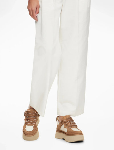 See toss on värske lähenemine klassikalisele siluetile, millel on platvormtald ja mis kujutab tuttavaid elemente ümber eristuva nüansiga. Valmistatud seemisnaha, nailoni ja taaskasutatud tekstiilide segust, pakub see mitmeid paeluvõimalusi ning sisaldab nii lamedaid kui ka satiinpaelu, mis võimaldavad kohandatud sobivust ja stiili.