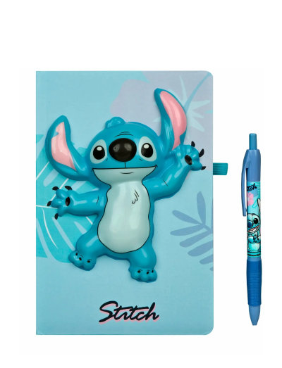 Disney Stitch hardcover notebook with 3D squishy figure on the front. Contains 60 pages of FSC certified paper and an ink pen. Comes in a gift box - perfect for all Stitch fans!
