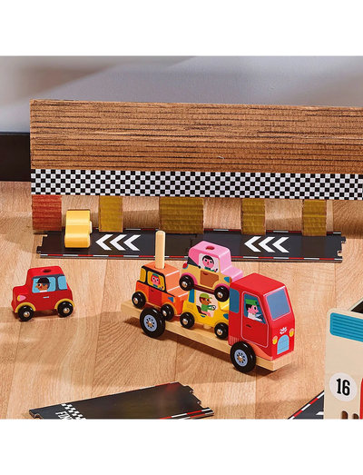 2+ AastadThe wooden red truck with 4 stackable cars is designed by Ingela P.Arrhenius for kids aged 2+. This early learning toy encourages the child's fine motor skills, free and imaginative play and cognitive development. By manipulating the different pieces, the child improves hand-eye coordination and problem-solving skills, while learning to name vehicles.Each colored piece represents a rolling or flying vehicle, ready to become the hero of new adventures. Whether by rolling each piece, inventing fun stories or learning to recognize the different vehicles, the wooden early learning toy offers a multitude of possibilities to stimulate your child's imagination and creativity.Giving a wooden toy means offering a durable, solid toy with a natural texture that is pleasant to the touch. Wooden toy, durable Montessori awakening toy Nesting game and free play Development of fine motor skills Development of hand-eye coordination Observe, analyze, understand, experiment Sort, do, undo, redo Development of the imagination Enrichment of vocabulary, the child learns the names of vehicles and colors.Content: 1 wooden truck and 1 wooden trailer 4 wooden vehicles.