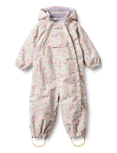 TuulekindelCute technical outdoor suit with print in breathable and waterproof fabric for babies. - Hidden double zipper down the front- Adjustable and detachable hood- Rib collar- Chest pocket with pocket flap- Elasticated cuffs and leg hems- Elastic detail at the back for nice fit - Detachable rubber foot straps- ReflectorsWheat's technical suits are breathable, durable and wind- and waterproof to ensure that your child stay dry and comfortable. The suit is intended as a transition suit for spring, when the temperature begins to rise, and you can start using lighter outerwear. The style and fit are similar to our snow suit, but this suit has a polyester lining without padding.The tech suit has many practical details such as a rib collar, detachable and adjustable hood, chest pocket and an elastic gathering at the back as well as elastics around the wrists and leg hems for a more fitted look. It also has adjustable rubber foot straps to go around the footwear to make sure that the suit doesnt move out of place when your child is outside playing. The suit can unzip and open completely, so its easy for your child to get in it.---- Waterproof: 10.000 mm - Breathability: 8.000 g/m2/24 h - Abrasion resistance: 50.000 rubs - Fluorine-free (BIONIC-FINISH® ECO) - PFC-free - Taped seams- GRS certified---- Standard 100 by OEKO-TEX®- Outer shell: 100% Recycled polyester - Lining: 100% Recycled po