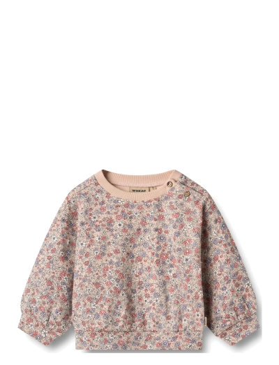 Long-sleeved sweatshirt with print in soft organic cotton for your baby. - Oversized fit- Dropped shoulders- Opening at left shoulder- Soft rib at neckline and hems - Slight gatherings at cuffs - Whest signature printWheat's sweatshirts are soft and have a casual fit that makes it comfortable for your baby to wear. The sweatshirt is a popular item in childrens wardrobes, as it is versatile and works perfect for most outfits. ---- Standard 100 by OEKO-TEX® - 95% Organic cotton, 5% Elastane- The product is GOTS certified