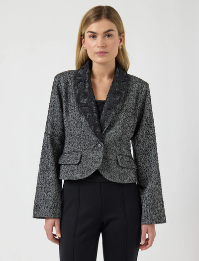 Täienda oma ülerõivaste kollektsiooni selle stiilse jakiga, millel on õrnad pitsdetailid. Villasegust kangast valmistatud rõivas on hingav ja reguleerib temperatuuri, tagades mugavuse erinevates ilmastikutingimustes. Sellel on reväärkrae, pikad varrukad, nööpkinnitus ja praktilised esitaskud.