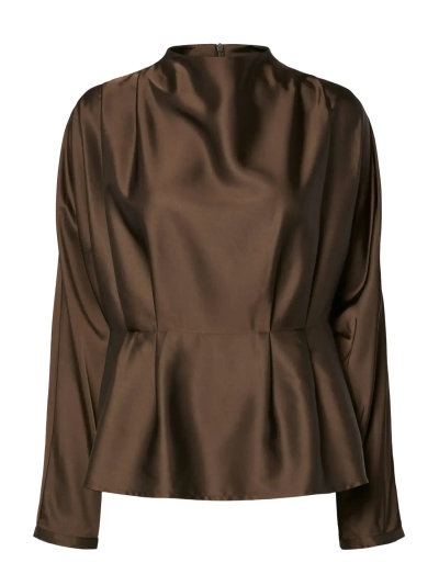 Pikkade varrukate ja kõrge kaelusega pluus on mitmekülgne täiendus igale garderoobile. Tavaline lõige tagab mugavuse, samas kui peidetud tagumine tõmblukk lisab elegantsi.