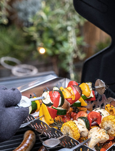 Mitmekülgne, individuaalselt vastavalt maitsele koostatav ja lihtsalt maitsev: grillvarred on iga grillsessiooni tipphetk. kas liha, köögiviljad või kala: maitsete valik on lõputu. zwilling bbq+ grillvarraste komplekt aitab teil valmistada täiuslikke šašlõkki- ja köögiviljade grillvarraste, mis rõõmustavad teie külalisi täiusliku röstitud aroomiga. viis varrast on lamedad, et koostisosad paremini kinni hoida. ja täiendav stopper tagab ka, et koostisosad ei libise varrastelt maha.