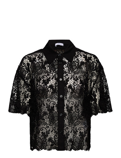 Crafted with intricate heavy lace, this short-sleeved top offers a sophisticated and delicate aesthetic. The design features a classic button-down front and a structured collar, blending traditional tailoring with a touch of modern femininity. This piece is ideal for layering or wearing on its own, adding an elegant touch to any ensemble.