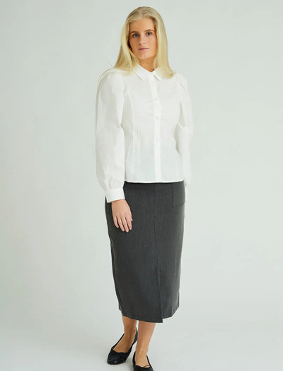 Malika shirt is a long-sleeved shirt with a fitted fit. The shirt features a collar, button closure, and sleeves with a puff effect.The shirt fits true to size.- Long sleeves- Fitted fit- Puff sleeves