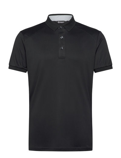 Hammel recycled polo is made of soft and stretchy material that is in re-cycled polyester and has DryCool and breathable functions. Knitted ribcollar, frontplacket with three buttons. Abacus logo at back below collar and at left collarwing.