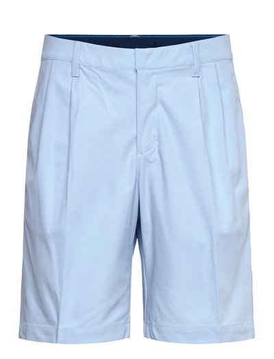 These golf shorts offer a comfortable fit. The fabric allows for a wide range of motion. A clean design with pleated details adds style. They are made with recycled materials.