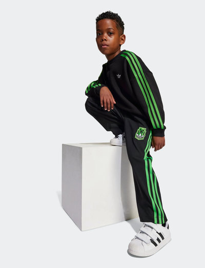 Unleash your child's creativity with the adidas Minecraft Crew Set. Designed for everyday lifestyle, this unisex set features a loose fit for both the top and bottom, ensuring comfort during playtime. Crafted with 97% recycled polyester and 3% elastane, along with 100% cotton, it showcases adidas' commitment to using recycled and renewable materials. The drawstring closure and knit construction add practicality and style, while the floating Trefoil logo and Minecraft collaboration bring a touch of fun to their wardrobe.Whether they're playing their favourite video game or just playing, this kids' set from adidas and Minecraft keeps them comfortable. The loose fit and soft French terry fabric let them move freely. Graphics inspired by an iconic Minecraft character adds a fun finish.