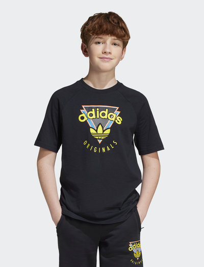 This kids' adidas tee is made in cotton and features a loose fit to keep them comfortable all day. A vibrant geometric adidas Originals graphic in a mix of puff print, rubber print and embroidery stands out on both pieces. • Loose fit • Crewneck • 100% cotton