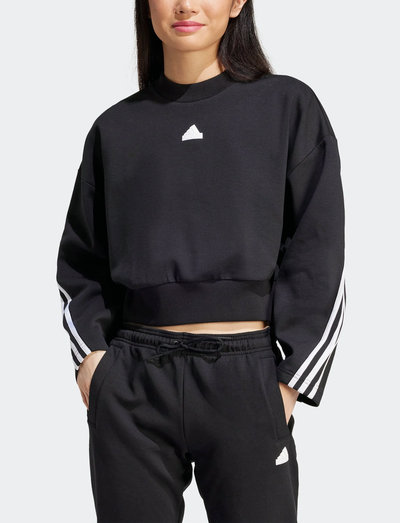 The Future Icons Three Stripes sweatshirt is a stylish and comfortable choice for women. It features a loose fit and iconic 3-Stripes design, making it a versatile piece for both leisure and activewear. The sweatshirt is made from a blend of cotton and recycled polyester, offering a premium feel and a sustainable choice. It is perfect for casual outings, layering under a coat, or simply relaxing at home.