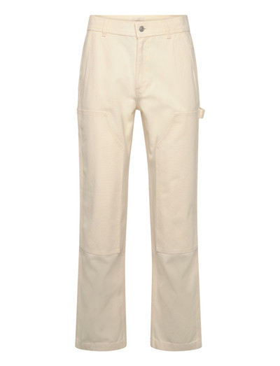 These straight-leg trousers feature reinforced knee panels and a tool pocket, blending practicality with a clean silhouette. The design incorporates classic workwear elements, making them a versatile addition to any wardrobe.