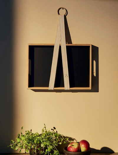 The Andersen Tray Holder provides a practical way to store serving trays or cutting boards while also serving as a decorative element in the kitchen. Its minimalist design and natural materials make it easy to integrate into the kitchen or dining area, adding both order and charm. It also features an elegant A-logo and a brass ring at the top, making it simple to hang the tray holder in your home.