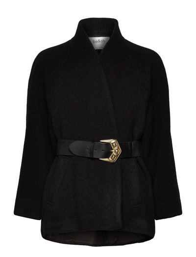 The CAPE HINI is a stylish and comfortable wool jacket. It features a classic fit and a wrap-around design with a belt. The belt has a unique buckle that adds a touch of elegance to the jacket.