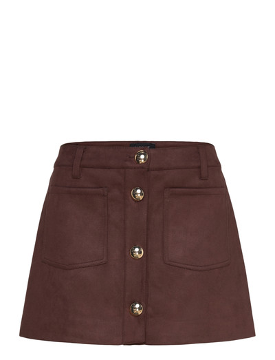 Crafted from soft faux suede, this short skirt features a front button closure and patch pockets. A versatile piece that pairs well with a variety of tops, from casual tees to dressy blouses.