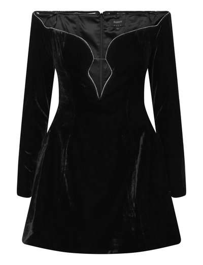 The Luvia Velour Dress has an off the shoulder neck line and features a diamante trim with long sleeves. It Is a mini legnth, fully lined.
