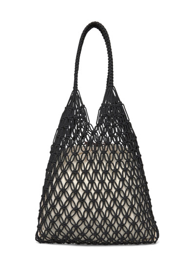 Featuring a striking macramé design, this bag offers a blend of bohemian style and practical functionality. The open-work construction provides a glimpse of the contents, while the sturdy handles ensure comfortable carrying, making it ideal for market trips or beach outings.